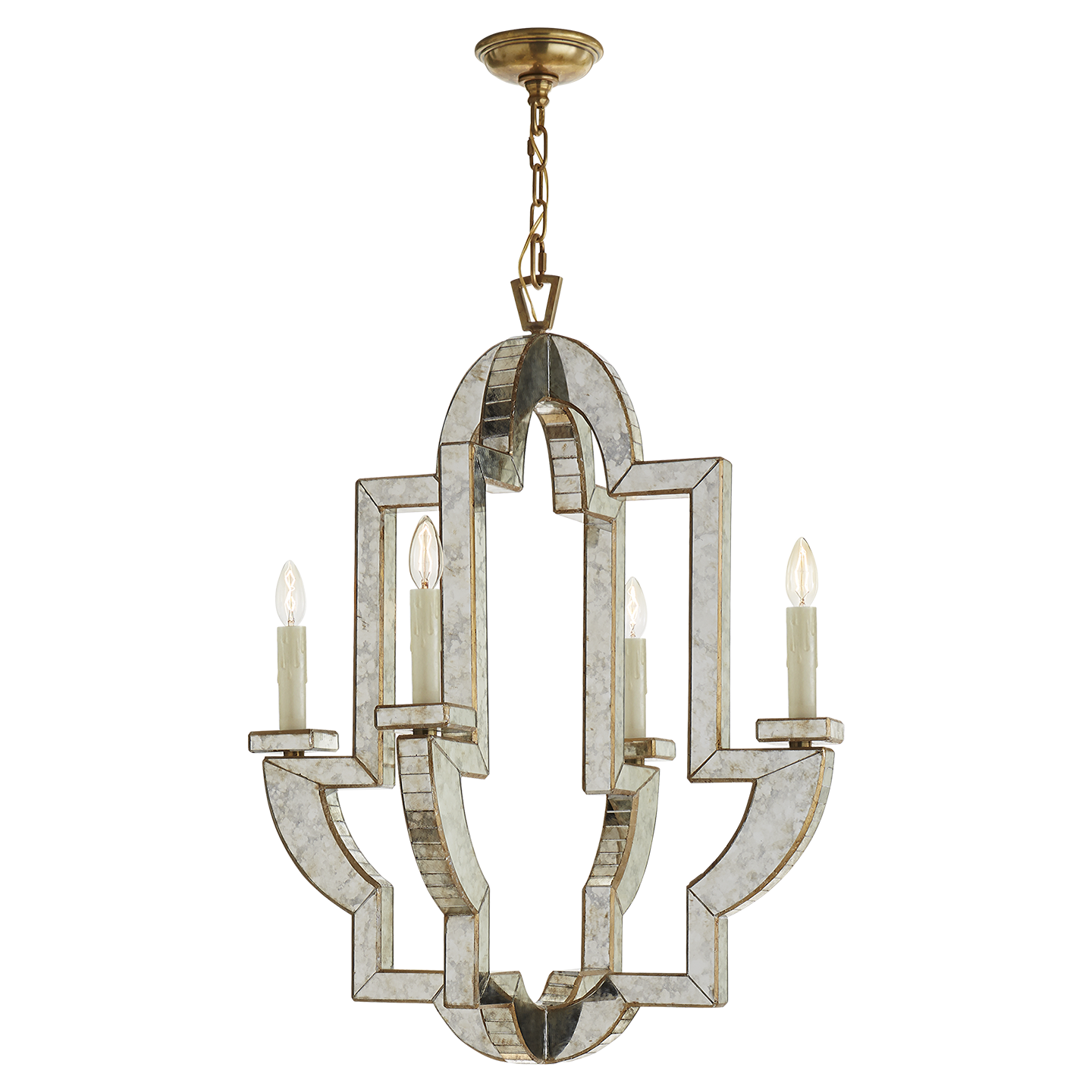 Lido Medium Chandelier in Antique Mirror and Hand-Rubbed Antique Brass